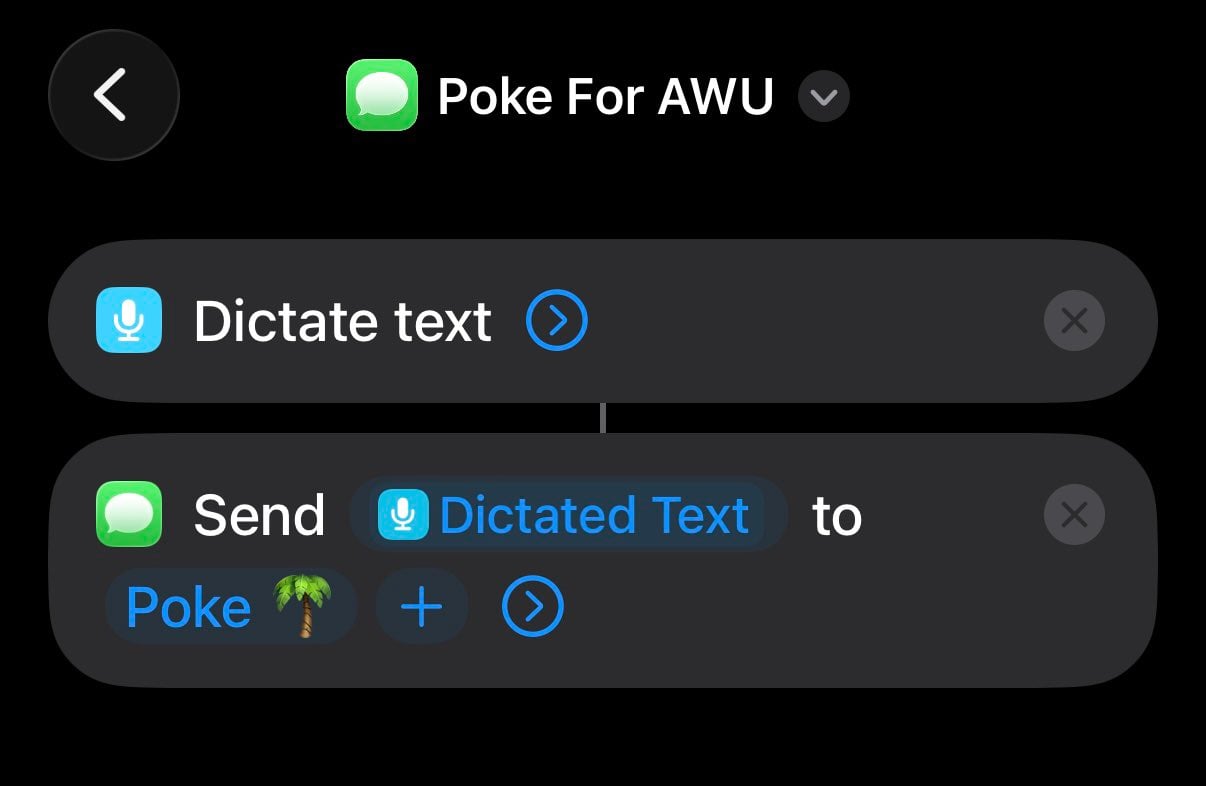 Eli Kia shared his shortcut for the Poke assistant from Interaction – a simple Dictate Text + Send Message shortcut designed for the Action Button on his watch.