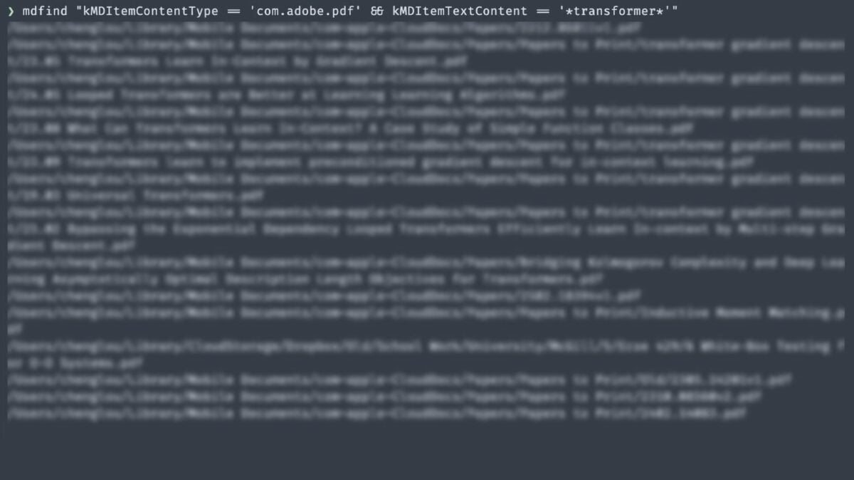 Public service announcement for all of you running Claude Code/Clawd: macOS’ Spotlight comes as a terminal tool, mdfind, that can fuzzy & exact query your entire computer in real time. Ask your bot to use it!