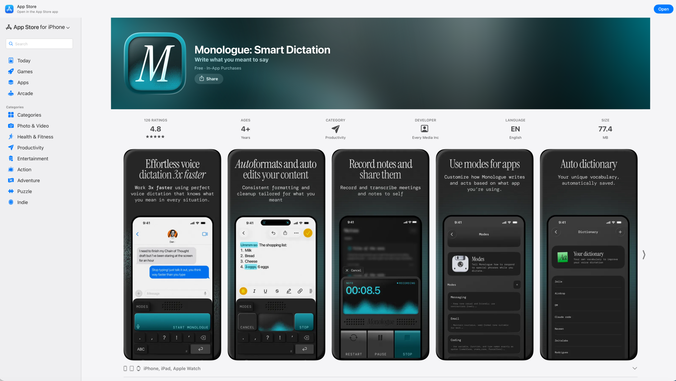 Monologue for iPhone and Apple Watch