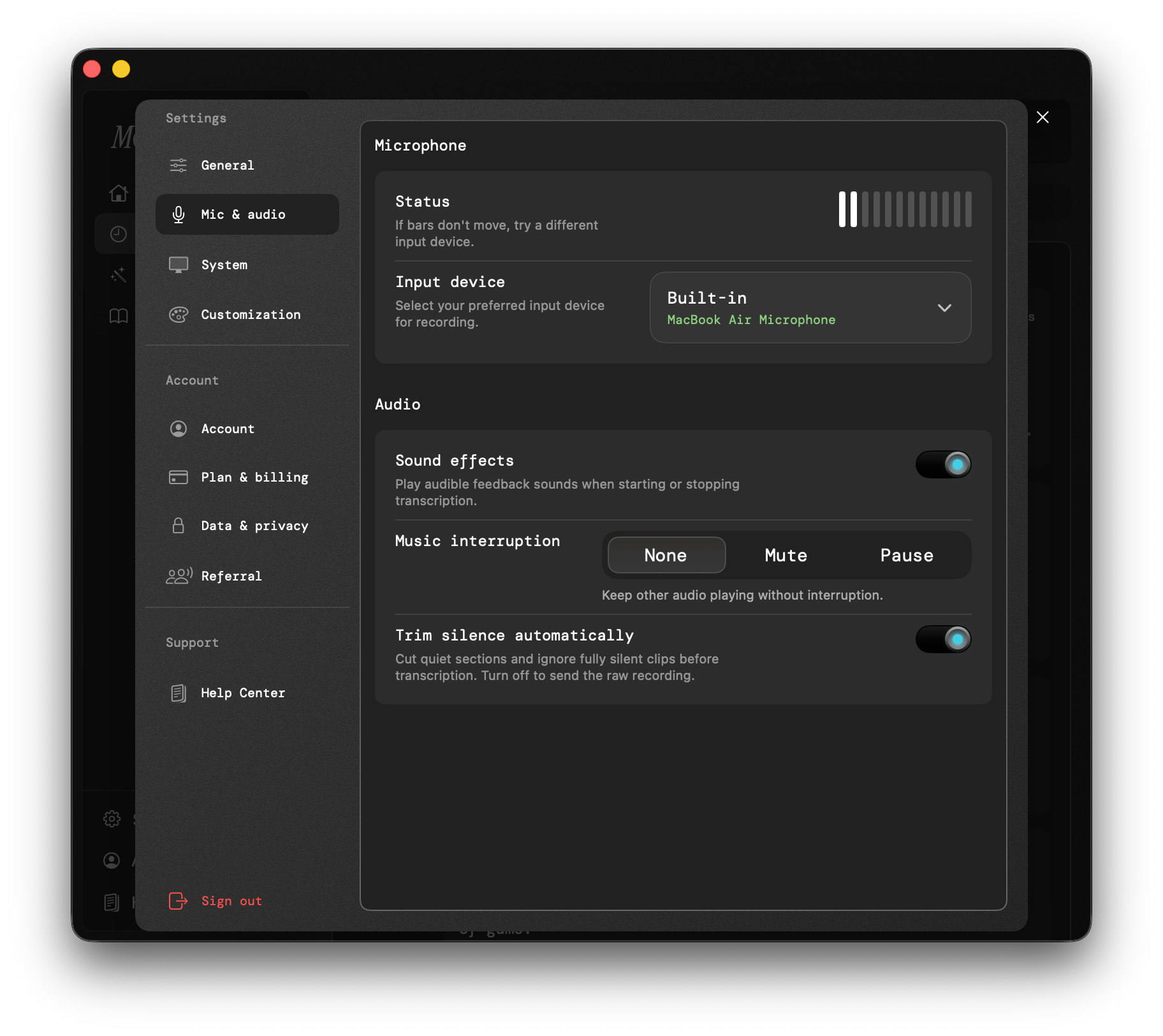 My biggest tip for optimizing Monologue would be this: pick a dedicated audio input device per computer. I find it’s too annoying to use headphones because of Automatic Switching taking over when I’m using another device like listening to music on my phone, so I’ve switched Monologue to always use the system audio (or my external mic in my studio). That way, I’m always able to dictate directly to the machine without interrupting playback.