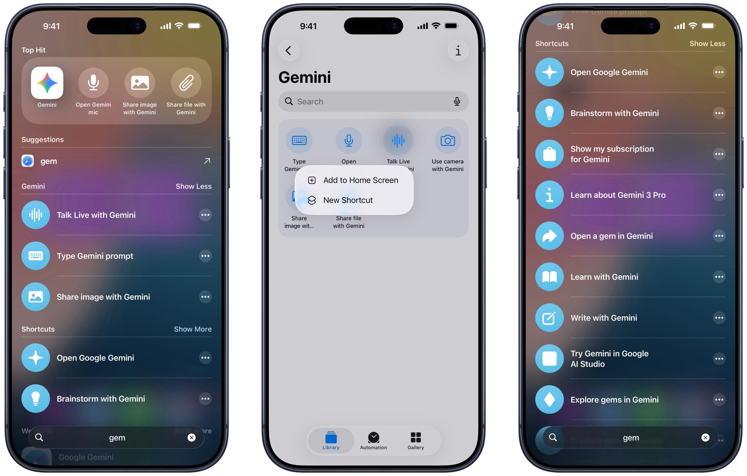 Gemini shortcuts in Siri, Spotlight, & Shortcuts