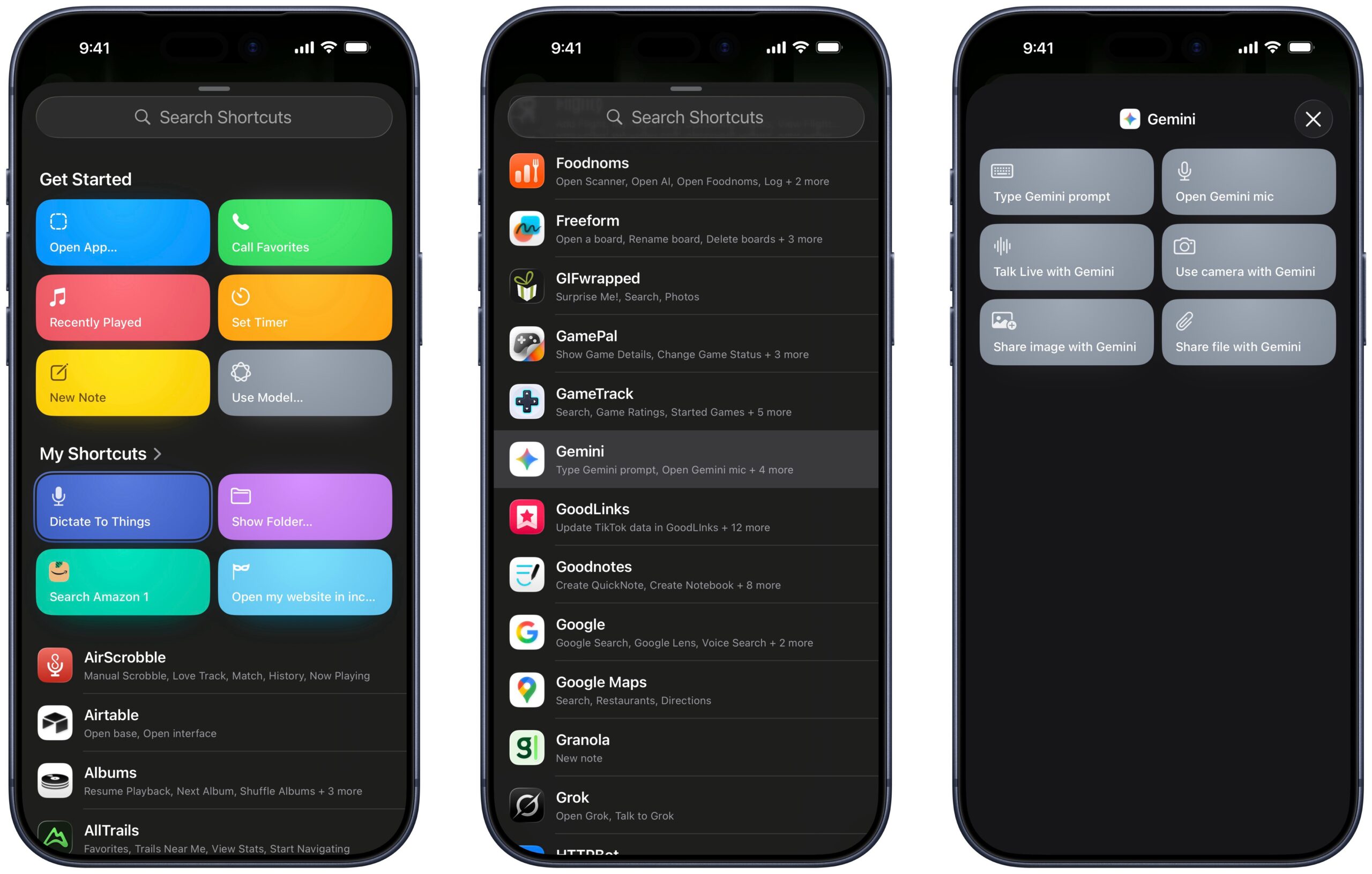 If you search for or scroll down to Gemini, then tap into the results, you’ll see six shortcuts (I’ve linked my equivalents for reference):